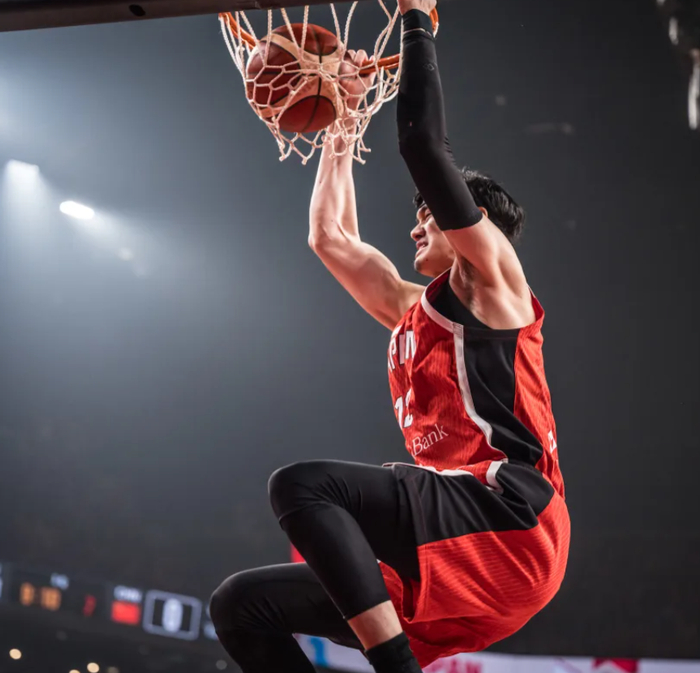 渡边雄太更是前NBA球员,他在NBA打了213场比赛,场均4.2分2.3篮板0.6助攻,命中率42.6%,三分命中率37%,他在NBA只是一个轮换而已。
